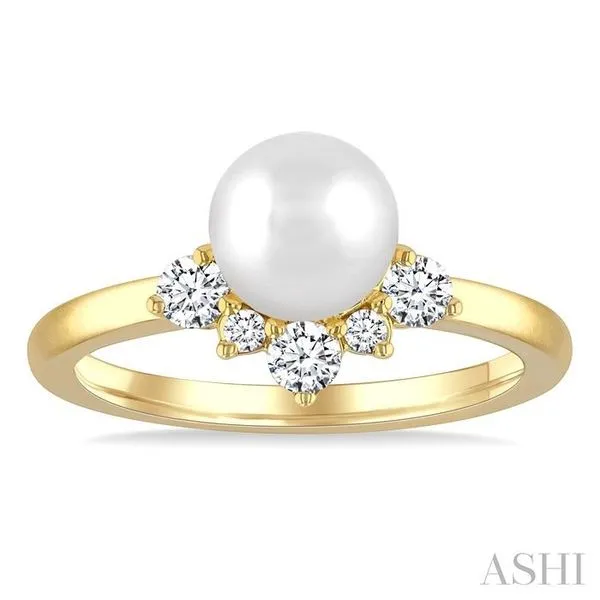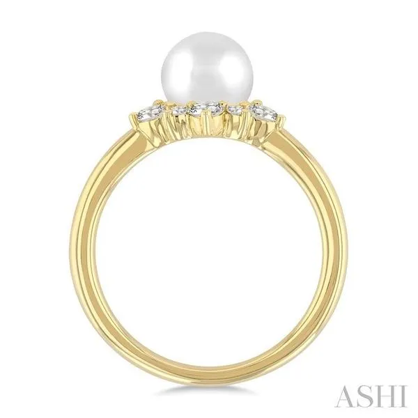 7MM Cultured Pearl and 1/4 Ctw Round Cut Diamond Fashion Ring in 10K Yellow Gold Image 4 Adler's Diamonds Saint Louis, MO