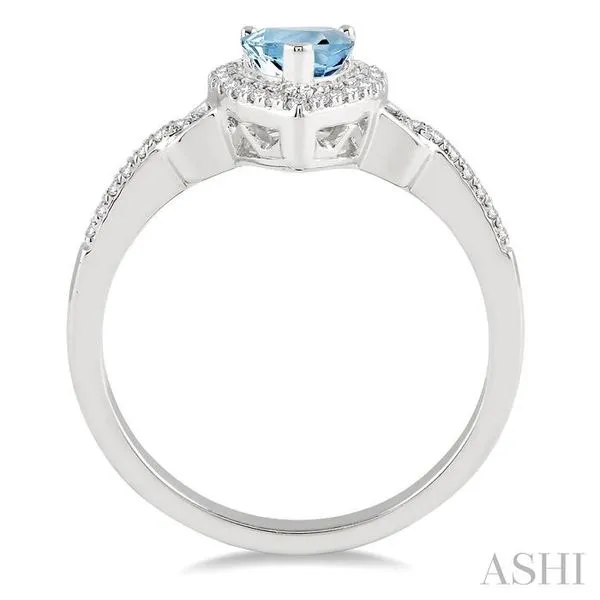 3. 7x5 MM Pear Shape Aquamarine and 1/6 Ctw Round Cut Diamond Ring in 10K White Gold