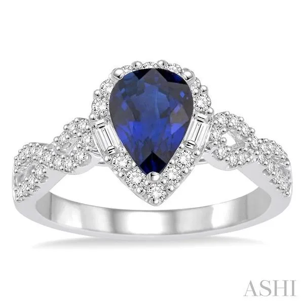 7x5 MM Pear Shape Sapphire and 1/2 Ctw Diamond Precious Ring in 14K White Gold Adler's Diamonds Saint Louis, MO