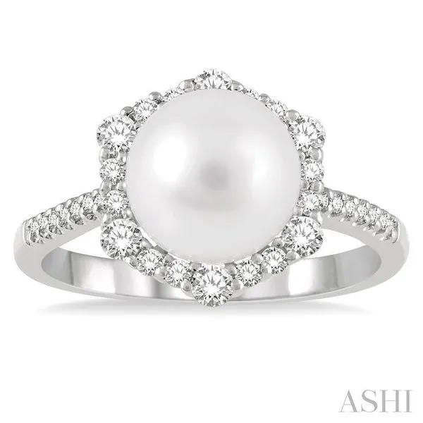 8 MM Cultured Pearl and 1/3 Ctw Hexagon Shape Round Cut Diamond Ring in 14K White Gold Image 2 Adler's Diamonds Saint Louis, MO