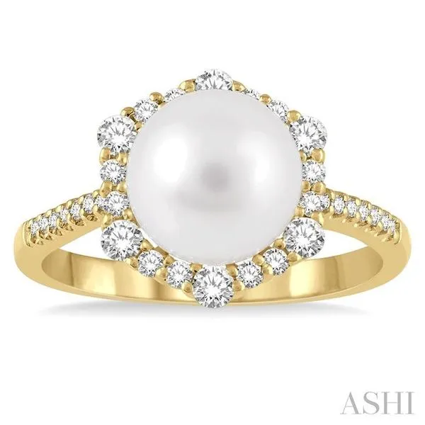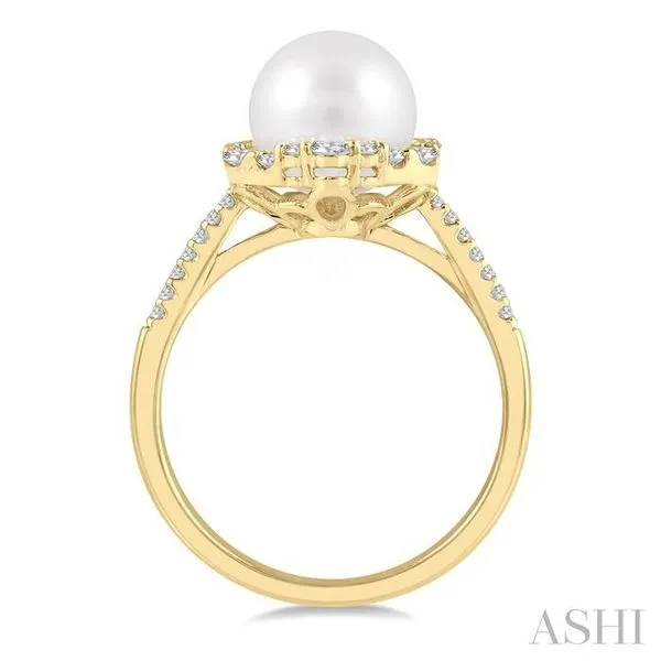 8 MM Cultured Pearl and 1/3 Ctw Hexagon Shape Round Cut Diamond Ring in 14K Yellow Gold Image 3 Adler's Diamonds Saint Louis, MO