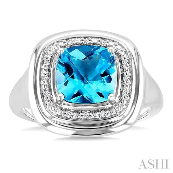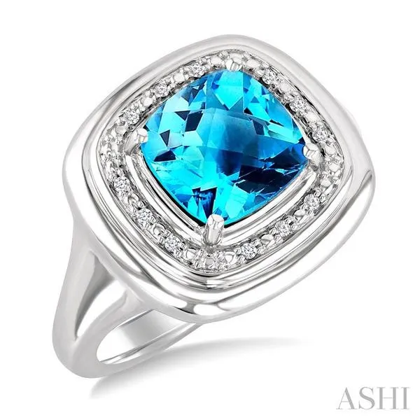 8 MM Cushion Shape Blue Topaz and 1/20 Ctw Round Cut Diamond Semi-Precious Ring in Sterling Silver Image 2 Adler's Diamonds Saint Louis, MO