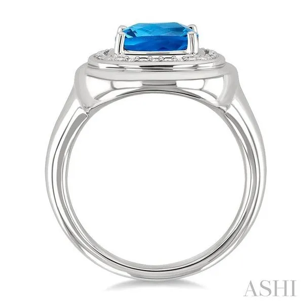 8 MM Cushion Shape Blue Topaz and 1/20 Ctw Round Cut Diamond Semi-Precious Ring in Sterling Silver Image 3 Adler's Diamonds Saint Louis, MO