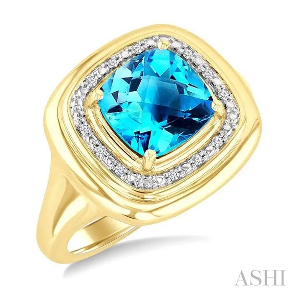 8 MM Cushion Shape Blue Topaz and 1/20 Ctw Round Cut Diamond Semi-Precious Ring in Yellow Gold Vermeil Image 2 Adler's Diamonds Saint Louis, MO