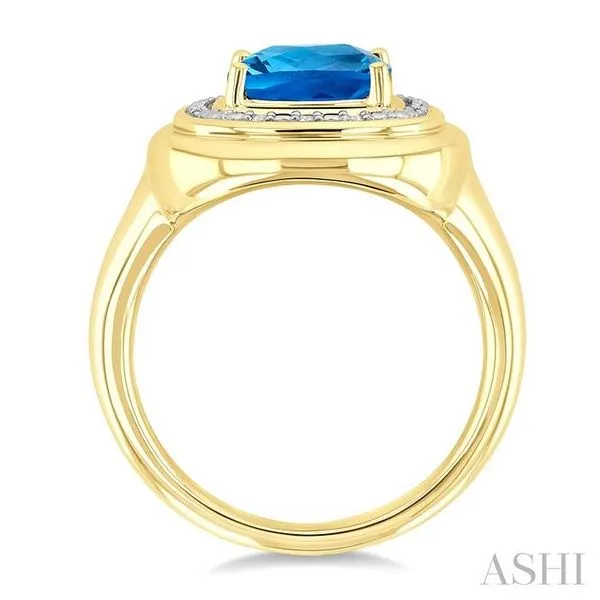 8 MM Cushion Shape Blue Topaz and 1/20 Ctw Round Cut Diamond Semi-Precious Ring in Yellow Gold Vermeil Image 3 Adler's Diamonds Saint Louis, MO