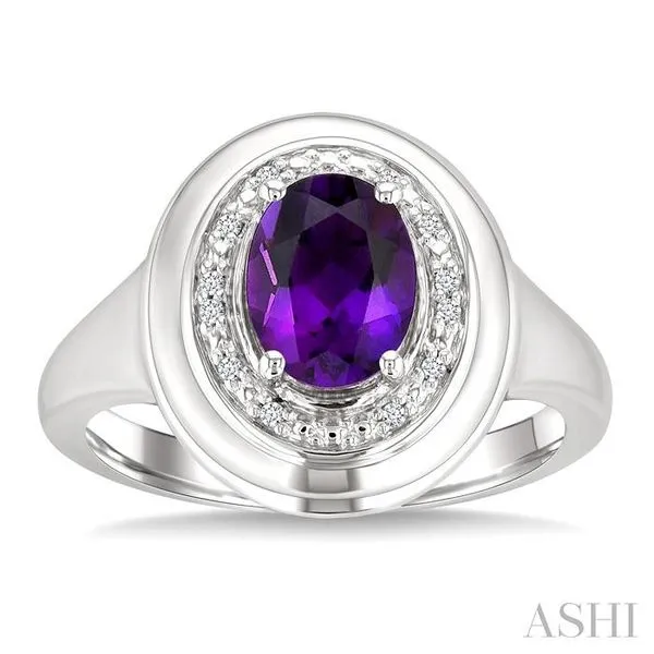 8x6 MM Oval Shape Amethyst and 1/20 Ctw Round Cut Diamond Semi-precious Ring in Sterling Silver Image 2 Adler's Diamonds Saint Louis, MO
