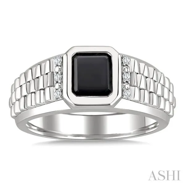 8x7 MM Octagon Shape Onyx and 1/20 Ctw Round Cut Diamond Semi-precious Men's Ring in Sterling Silver Image 2 Adler's Diamonds Saint Louis, MO