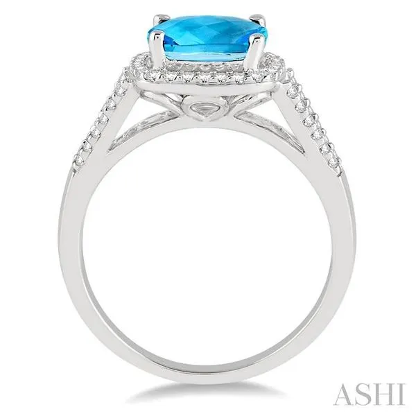 8x8 MM Cushion Shape Blue Topaz and 1/4 Ctw Round cut Diamond Ring in 10K White Gold Image 2 Adler's Diamonds Saint Louis, MO