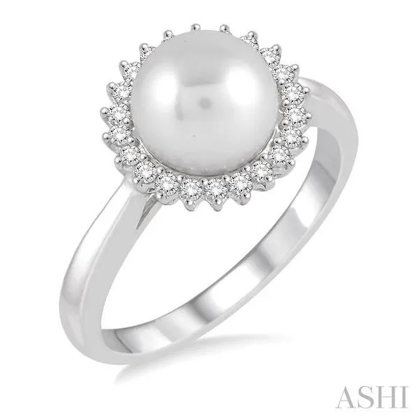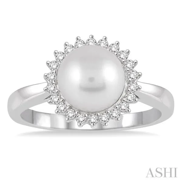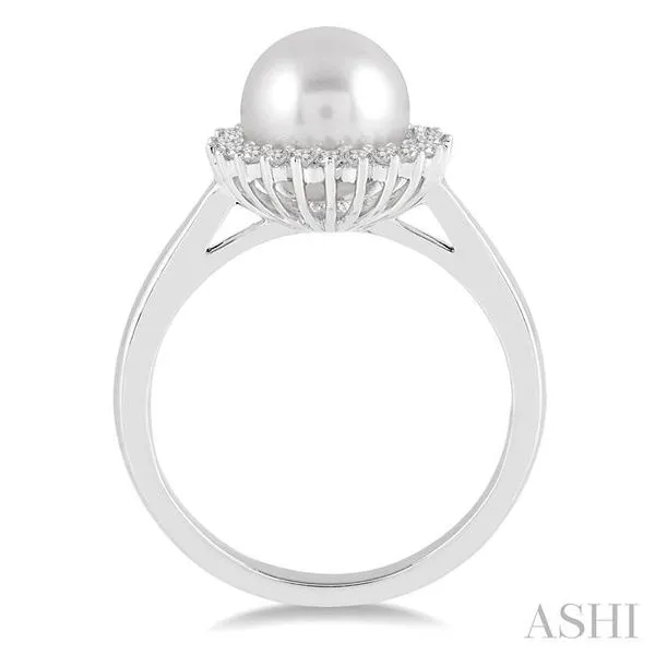 8x8 MM Round Shape Cultured Pearl and 1/5 Ctw Round Cut Diamond Ring in 14K White Gold Image 4 Adler's Diamonds Saint Louis, MO