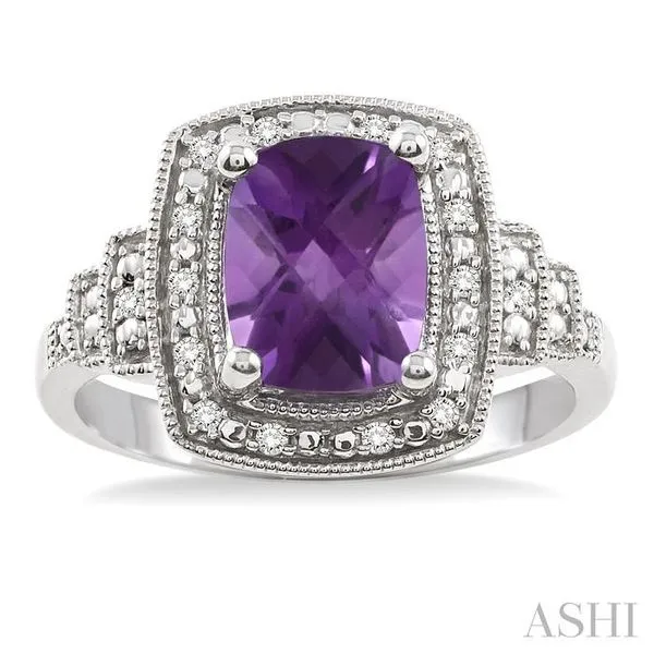 9x7 MM Cushion Shape Amethyst and 1/10 Ctw Single Cut Diamond Ring in Sterling Silver Image 2 Adler's Diamonds Saint Louis, MO