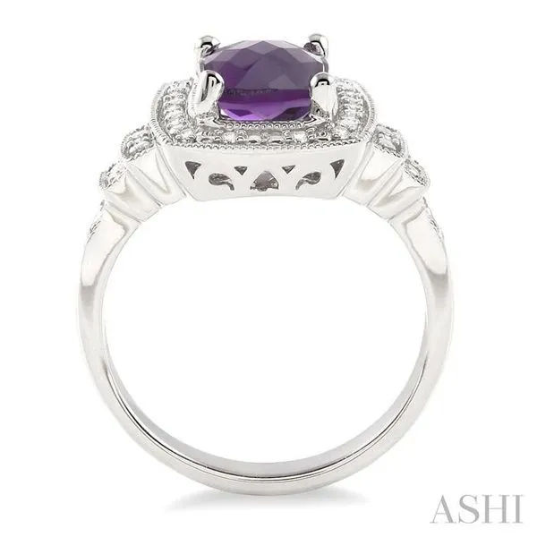 9x7 MM Cushion Shape Amethyst and 1/10 Ctw Single Cut Diamond Ring in Sterling Silver Image 3 Adler's Diamonds Saint Louis, MO