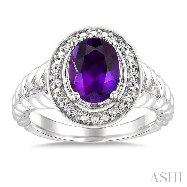 9x7 MM Oval Shape Amethyst and 1/20 Ctw Round Cut Diamond Semi-precious Ring in Sterling Silver Image 2 Adler's Diamonds Saint Louis, MO