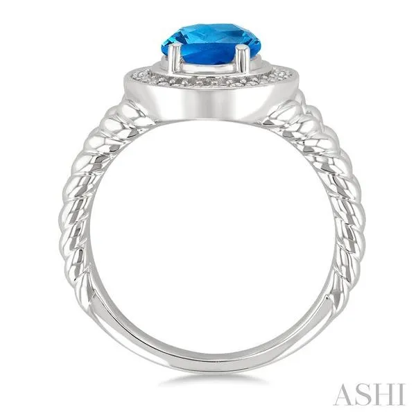 9x7 MM Oval Shape Blue Topaz and 1/20 Ctw Round Cut Diamond Semi-precious Ring in Sterling Silver Image 4 Adler's Diamonds Saint Louis, MO